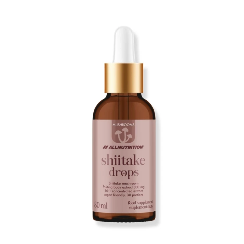 Mushrooms Shiitake Drops is a liquid extract made from shiitake mushroom fruiting bodies (Lentinula edodes). Thanks to its concentrated formula, each serving delivers a defined amount of extract in an easy-to-use drop form, making daily supplementation simple without capsules.